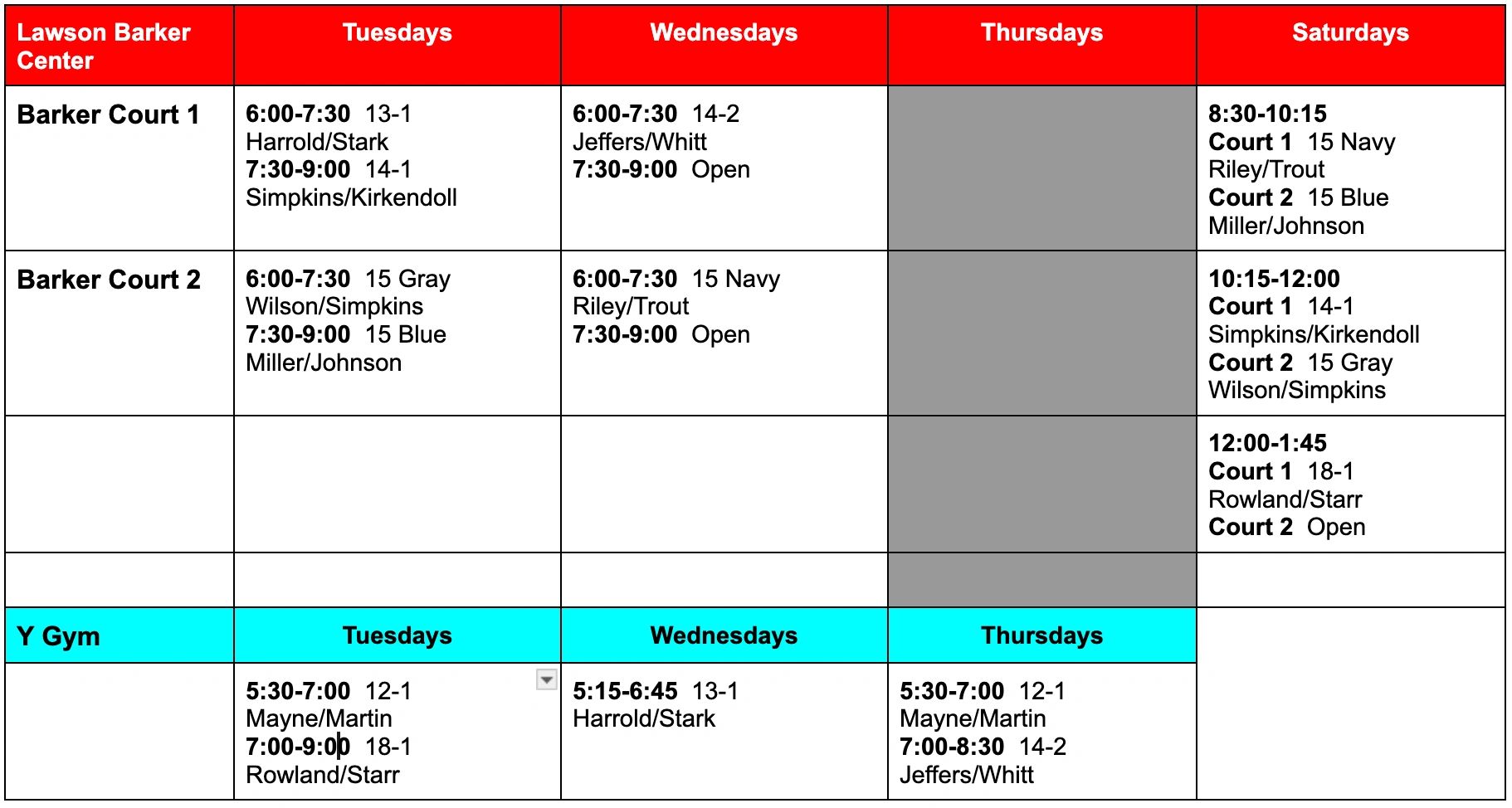Practice Schedule@ Lawson High School Barker Center & Yarbrough GymPractices 12-1 Select Mayne/Martin: T/Th @ Y Gym - 5:30-7p